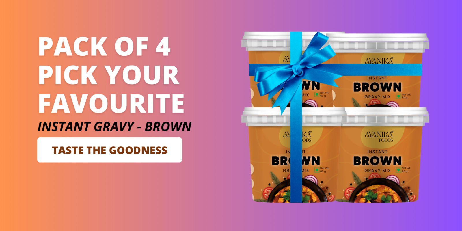 Our Instant Brown Gravy Mix Combo comes with four convenient packets, each containing enough mix to make up to four servings. Simply add water, cook and stir for a few minutes, and voila! You'll have a rich, savory gravy that pairs perfectly with everything from meals to chappati's.