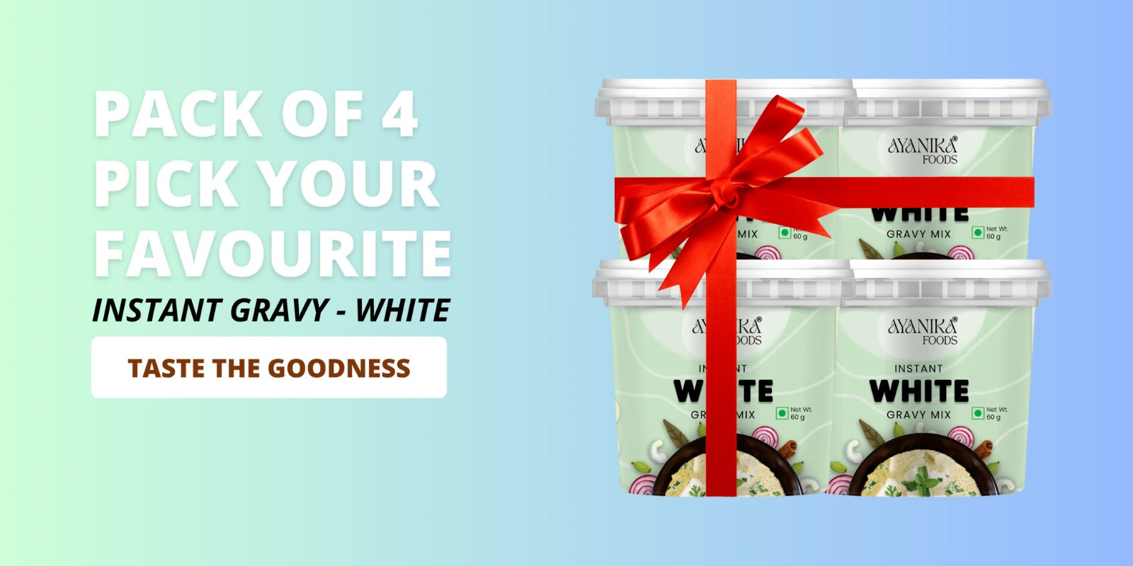 The white gravy inspired by the mughlai cuisine is rich and creamy. Subtle yet powerful flavours come together to make this gravy base. Some great addition to it would be ingredients such as mushroom, peas, mustard greens, chicken or lamb, panner.